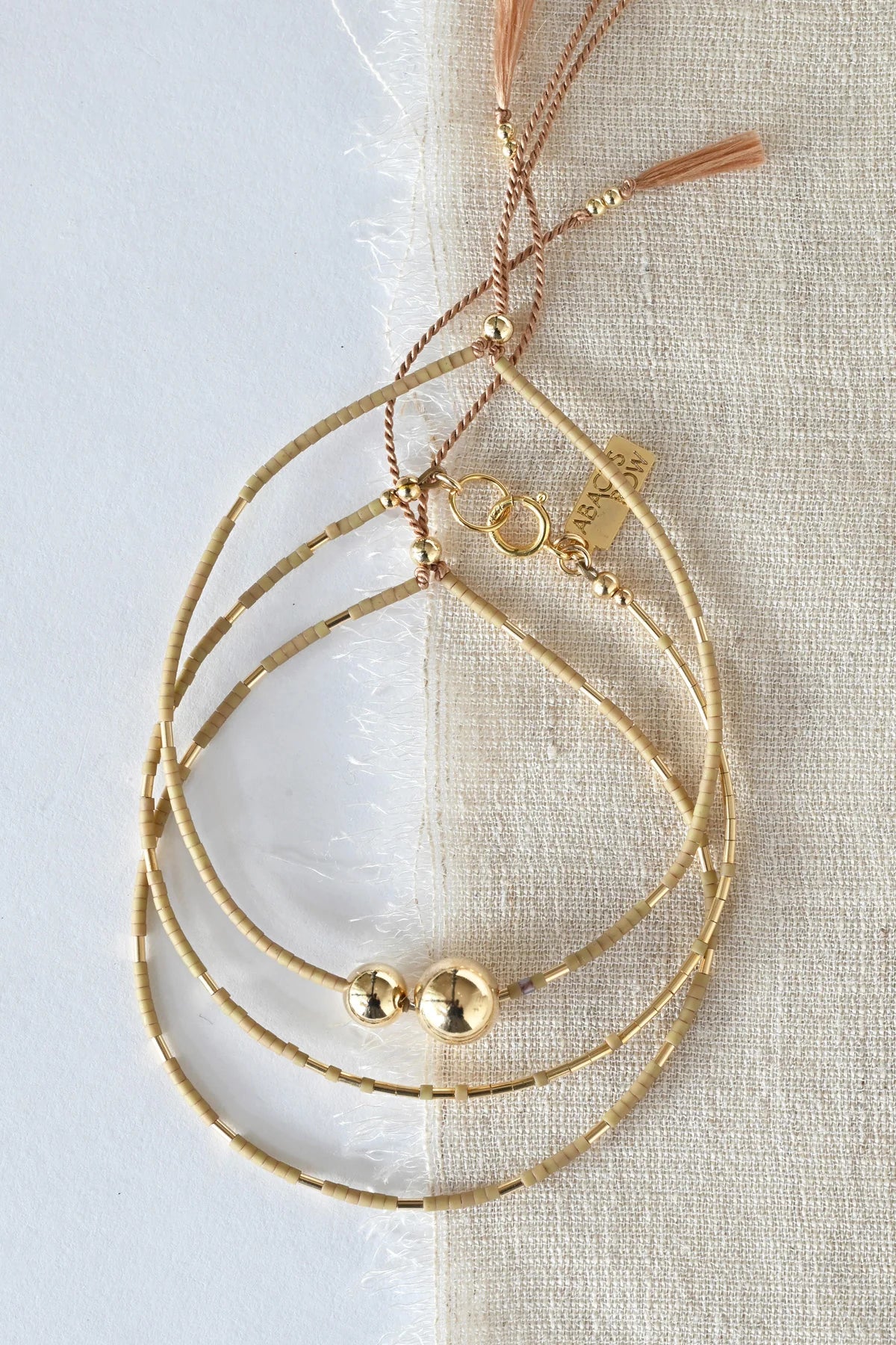 Working with Japanese glass seed beads in exceptionally small proportions, the designs in our Selene Collection highlight the fluidity in the nature of the materials and the precious quality of subtle details. Accented with 14k gold-filled beads, we created patterns and details that work beautifully in singular presentation or in layered combinations.