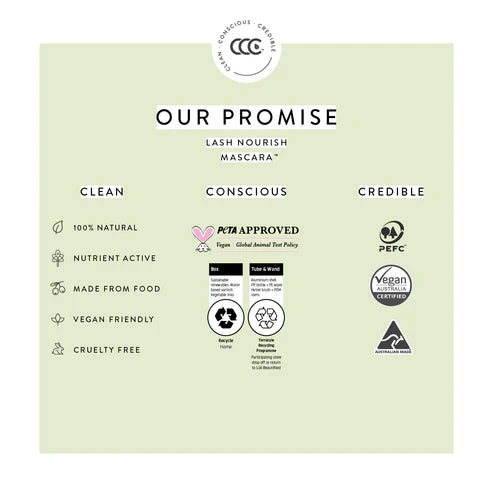 Synthetic-free creamy botanical formula nourishes, hydrates and supports natural lash growth and allows lashes to breathe, be nourished and not dry out: enriched with argan (EFA's), cucumber seed and avocado oils (Vitamins B5, B7 & E) and infused with green tea + coffee tea extracts (antioxidants, anti inflammatories + caffeine) plus silica-rich bamboo for the healthiest lashes ever.