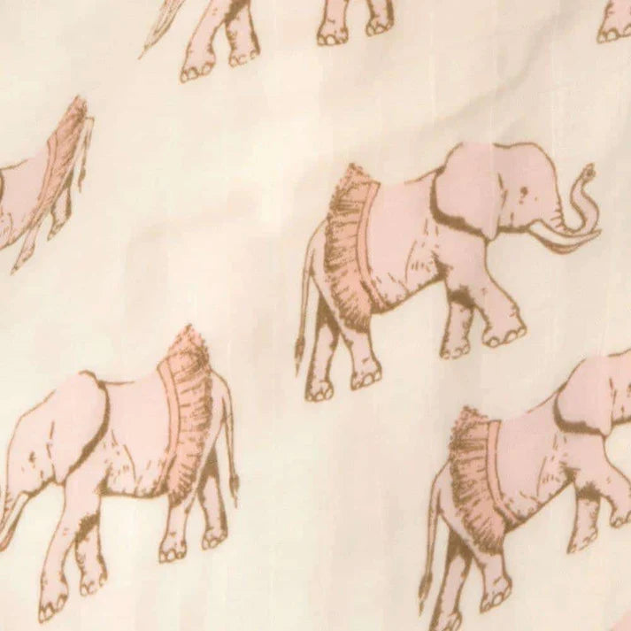 Our sumptuously soft and generously sized newborn and baby Bamboo Muslin Swaddle Blanket in the Tutu Elephant print helps your little one feel safe and secure while being wrapped in smooth and gentle luxury.