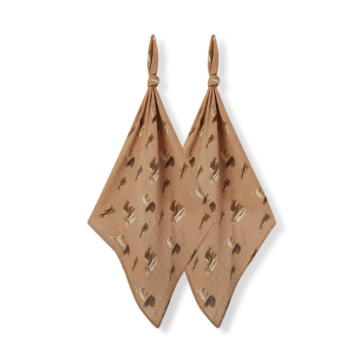 Quantity: Two (2) Muslin Burp Cloths, each measuring approximately 23 inches x 23 inches.