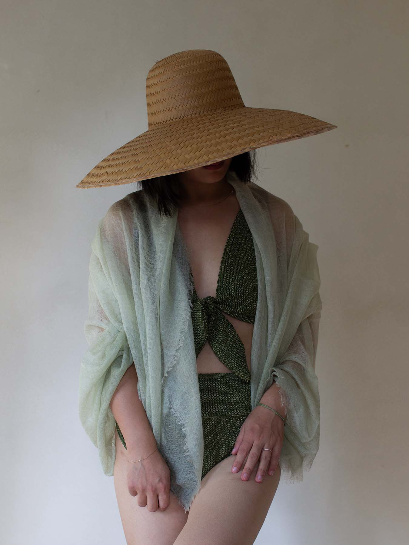Like the bright and lively tones of a fresh avocado, our dip-dyed scarf in light green captures the cheerful essence of spring. The soft ombre effect transitions seamlessly from vibrant green to lighter shades, evoking a sense of renewal and freshness. Crafted from luxurious cashmere yarn, this scarf is lightweight, super soft, and translucent, making it as comfortable as it is stylish. Versatile enough for all seasons, it can be used as a chic beach sarong, draped around a bikini for a fresh, playful look. This spring-inspired green adds an uplifting touch to any outfit, making it an ideal, travel-friendly accessory for every occasion.