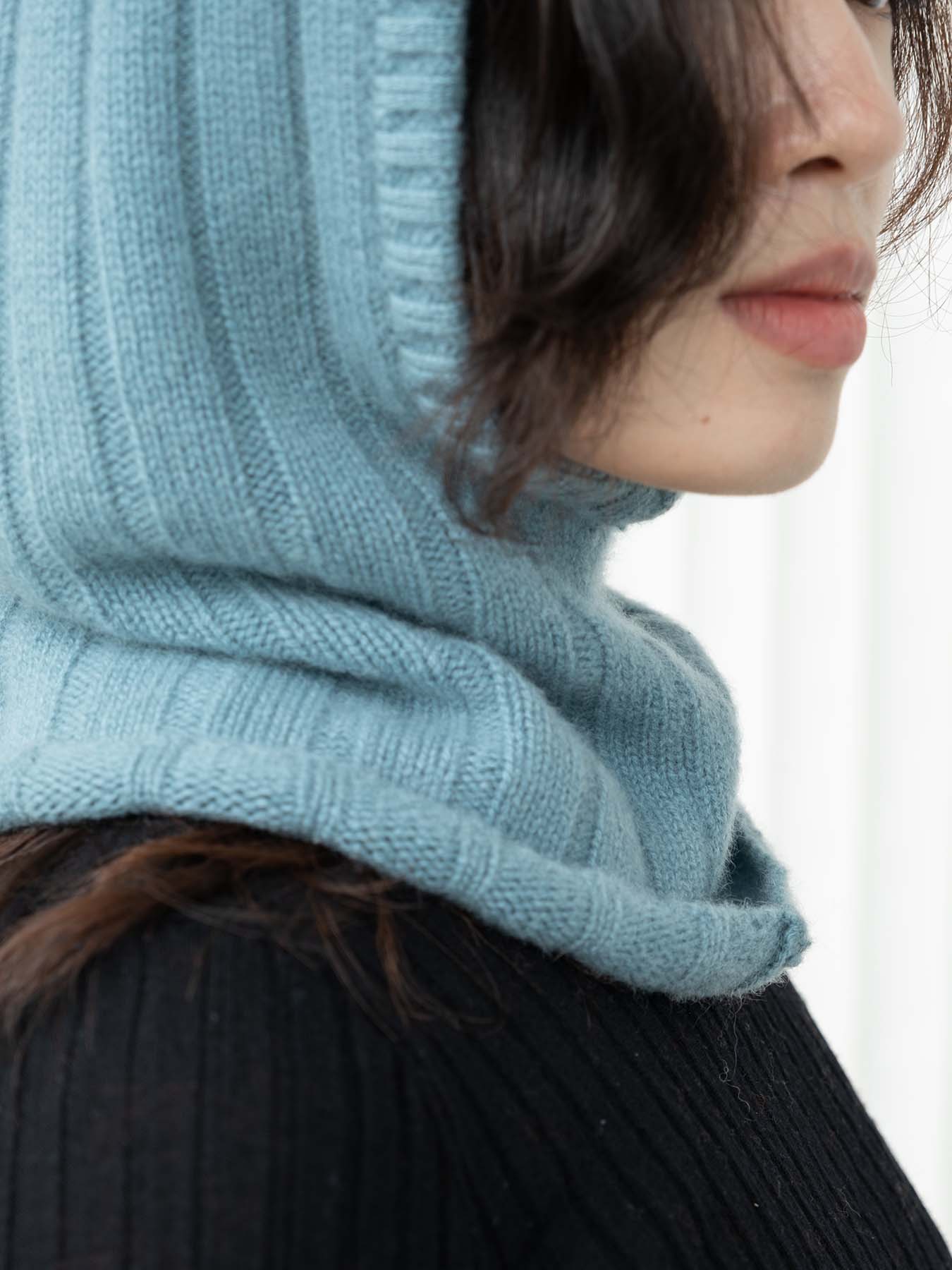 The Cashmere Ribbed Balaclava in soft blue offers a unique design that provides warmth and comfort in style. Made from luxurious cashmere, this versatile piece can be worn as both a neck warmer and a hood, offering exceptional protection against the elements. The ribbed texture adds sophistication, while the soft cashmere ensures you stay cozy all day long. Perfect for cooler weather, this balaclava makes a chic addition to any wardrobe, combining both functionality and elegance.