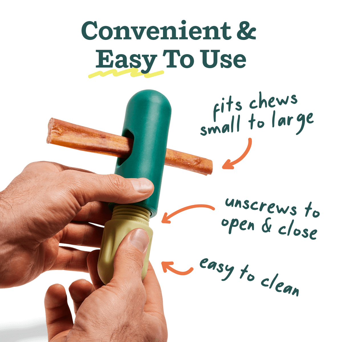 The easy-to-use, adjustable design fits chews of all sizes, and it’s a perfect fit with all-natural Woof Collagen Chews!