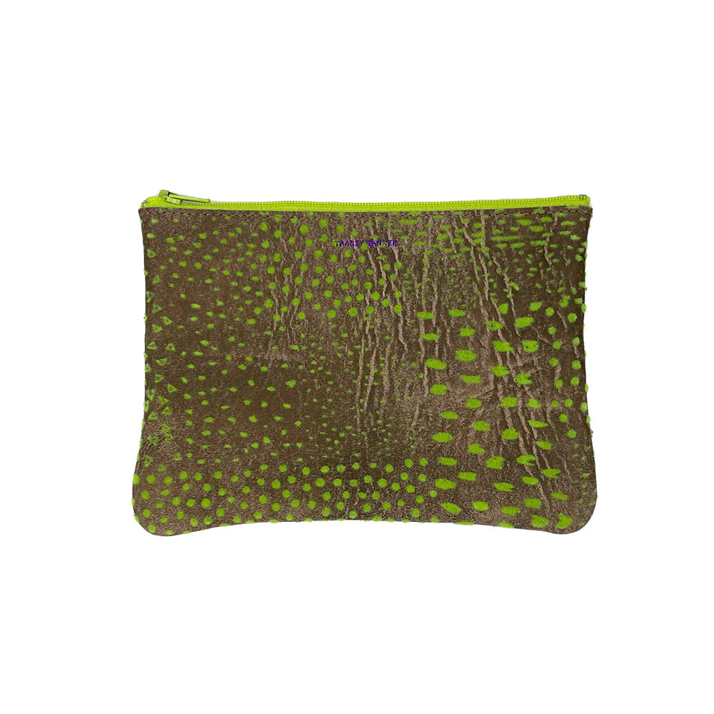Leather flat zip-top pouch perfectly sized to carry your phone, cash, credit cards and/or cosmetics: Use it to organize your essentials in a larger bag or carry it alone as a clutch.
